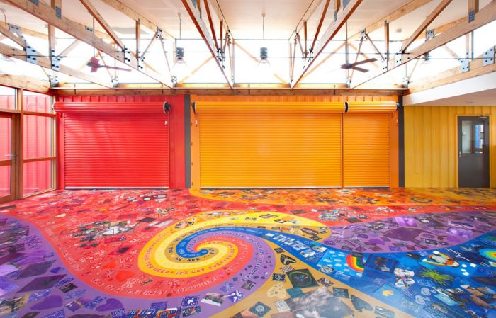 Venny 集装箱儿童中心放下卷帘门后的多功能活动空间