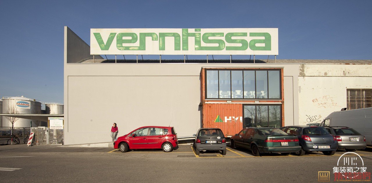 在这白色和明亮的空间包含有隐藏的宝藏:那就是16个回收再利用的集装箱。所有的这些集装箱都是在海洋上漂浮了数千公里,环游世界后来到这里的。它们如同巨大的积木一般被堆积起来,外部并没有多加任何装饰。这样的审美观使得它们仍然保留了原有的用途,并与它们现在所处于的中性的环境中区分开来。实际上,使用这种集装箱会占用约200平方米的场地,同时也很好的利用的空间内部的高度。