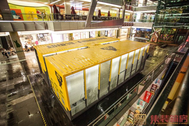 项目由两个集装箱拼接而成,中间为走廊,北侧箱体面为落地玻璃,保证了舱体内部的通透性。总建筑面积86